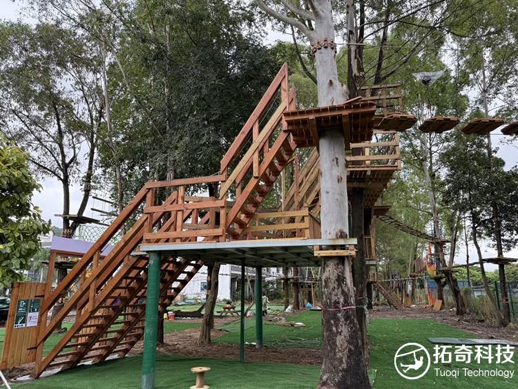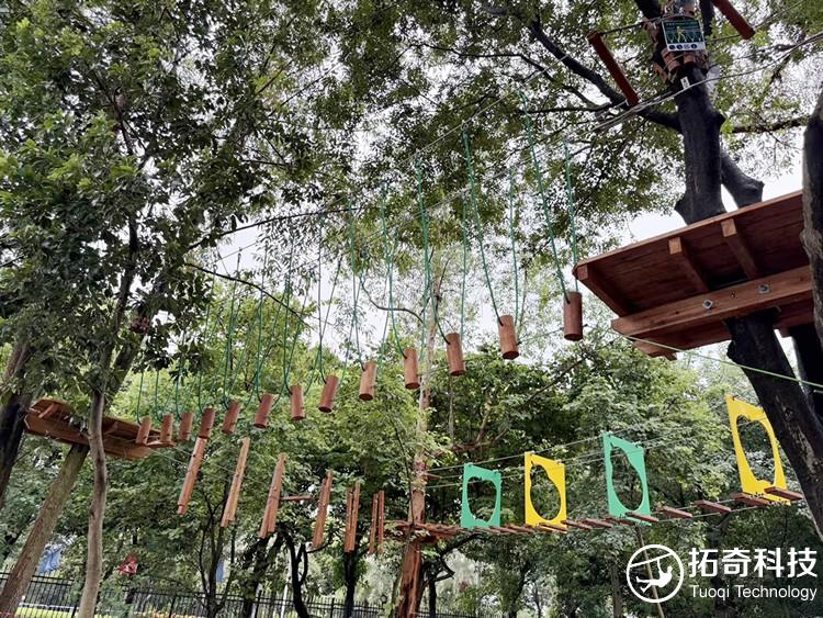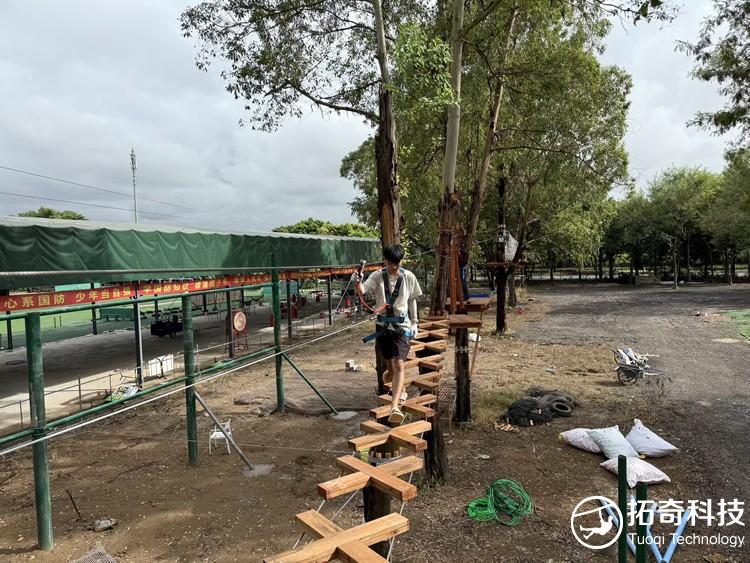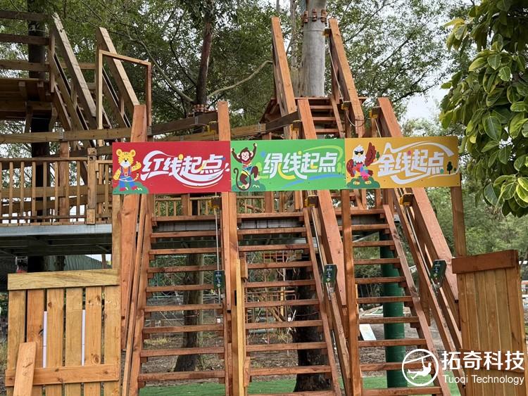 由历奇探险承建的广州南沙飞跃丛林森林探险项目完美收官!该项目位于广州南沙资讯科技园内,设计三条不同的探险线路,采用滑轮连续保护系统方式建设,同时配建有笨猪跳、彩虹滑道、绳网蹦床、森林卡丁车、森林越野车等项目,为青少年、企事业单位提供一个休闲娱乐的好去处!