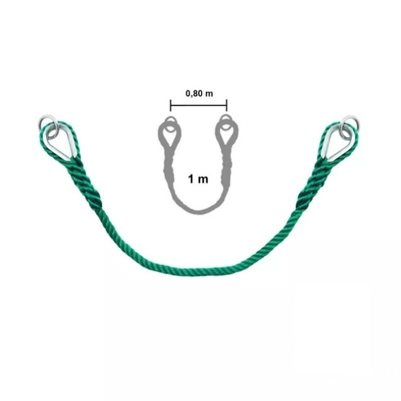 交叉绳由深绿色聚乙烯绳制成,长度1米。两端均配有顶针环和悬挂环。记得把安装模块所需的扎带也加入购物车。游戏模块不附带固定材料。