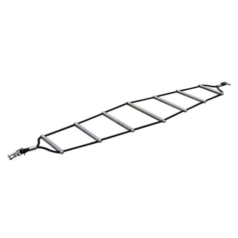 巴西梯由铝制梯级组成,两根Ø 16毫米加固绳索连接,绳索两端均配有顶针和固定环。梯子两端的旋转装置允许旋转,带来动态体验。梯级长度可变,从30厘米到45厘米不等,加上2米高的梯子,提供了丰富的项目体验。系列有蓝色、黄色、绿色、红色、黑色或米色可选,供自定义。