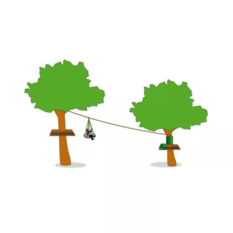 这条滑索配有带有软冲击区的秋千,并配有黑色聚丙烯外衬。悬挂环和八个镀锌钢调节环均为预备。