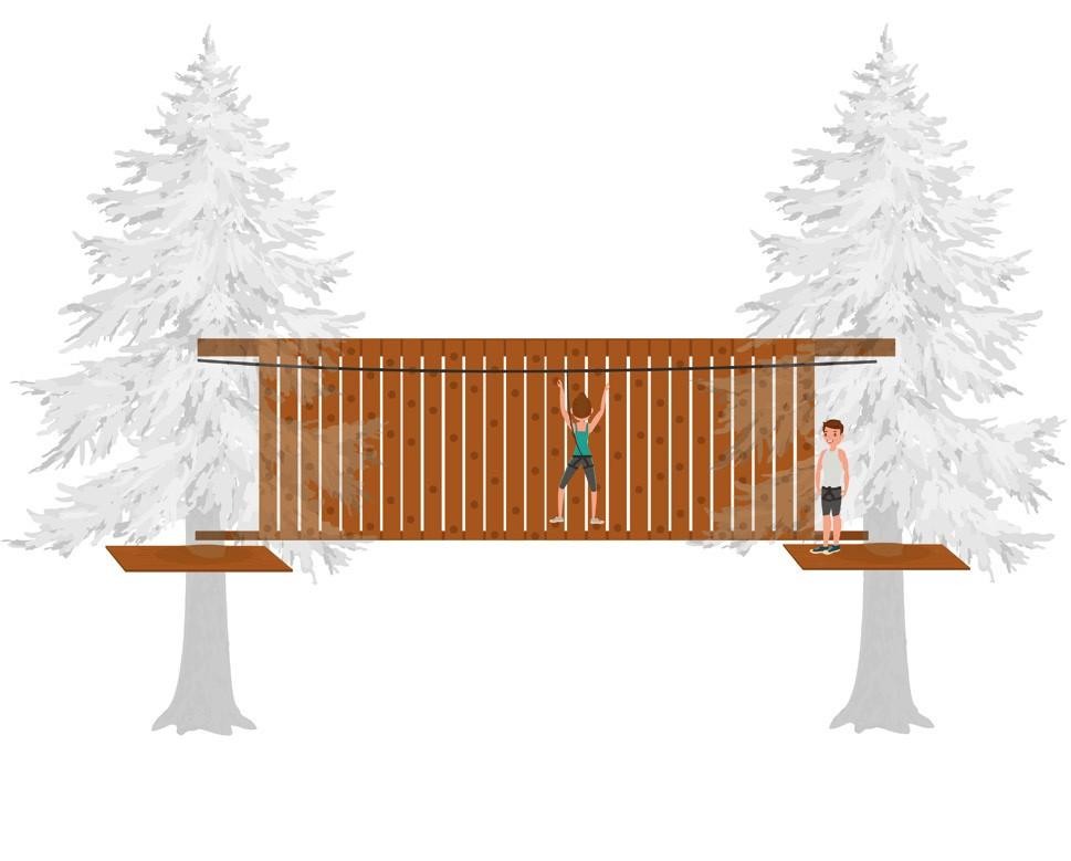 安装在两根方梁或电缆上。由落叶松木材制成的。板尺寸:20厘米× 250厘米。攀岩墙长度:定制,每1米长度有9个攀岩架。颜色攀爬架颜色: