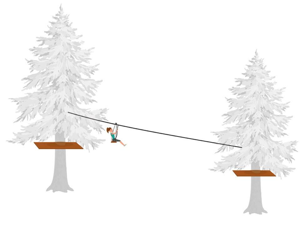 Installed on one wire rope. The sling is 200 cm long. Made of larch (mélèze) wood.