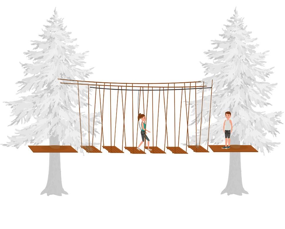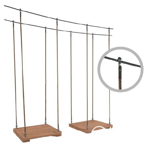 Installed on two wire ropes. The distance between the wire ropes is 60 cm. Slings are 200 cm long.
