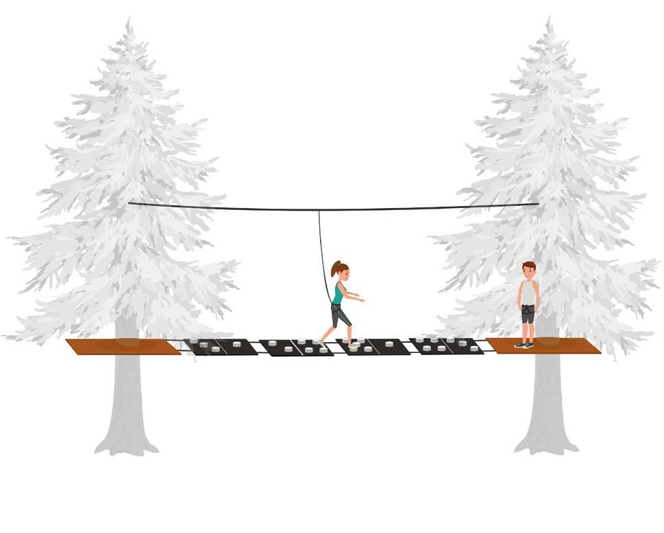 Installed on two wire ropes. The distance between the holes is 50 cm.