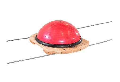 The semicircle is installed on wooden island. Island is made of larch (mélèze) wood and rubber half-balls.