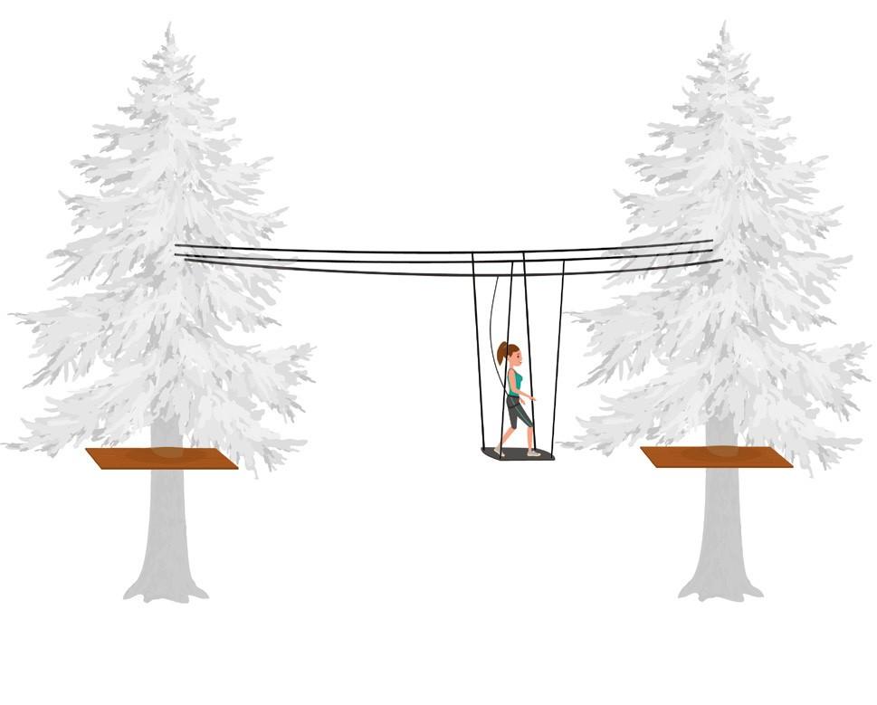 Installed on two wire ropes. The distance between the wire ropes is 60 cm.