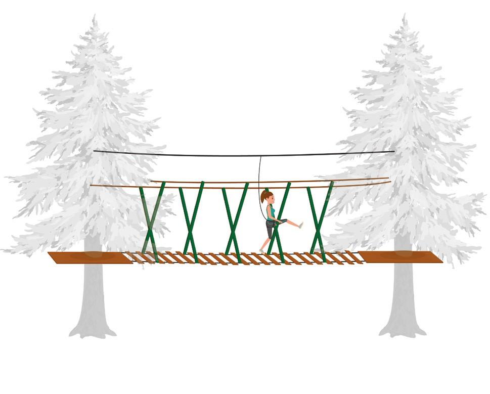 Installed on two wire ropes. The distance between the holes is 50 cm. Mattresses are installed