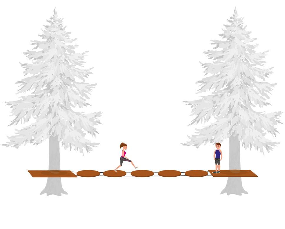 Installed on two wire ropes. The distance between the holes is 60 cm.