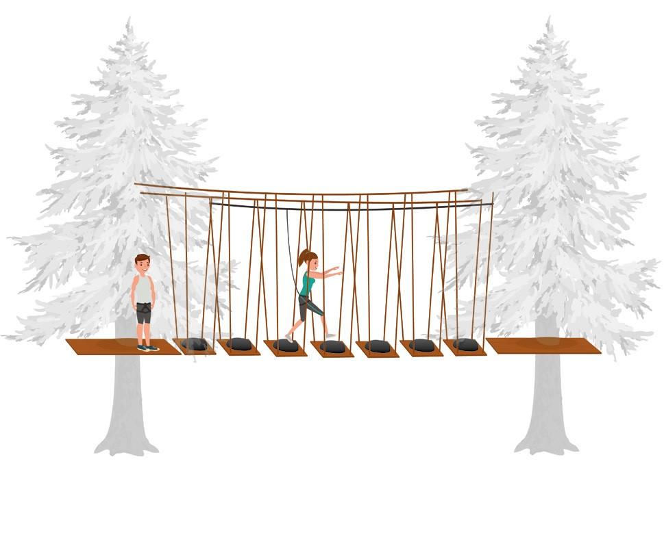 Installed on two wire ropes. The distance between the wire ropes is 60 cm. Slings are 200 cm long.