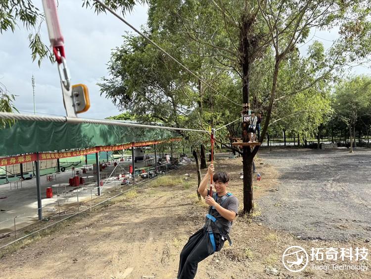 由历奇探险承建的广州南沙飞跃丛林森林探险项目完美收官!该项目位于广州南沙资讯科技园内,设计三条不同的探险线路,采用滑轮连续保护系统方式建设,同时配建有笨猪跳、彩虹滑道、绳网蹦床、森林卡丁车、森林越野车等项目,为青少年、企事业单位提供一个休闲娱乐的好去处!