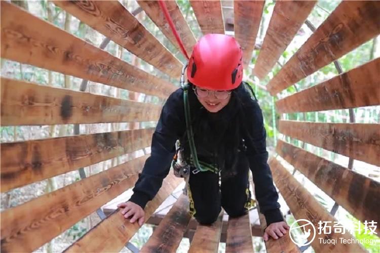 由拓奇科技有限公司设计并建设的“飞林探巢”项目位于景区雨林苗寨文化体验区,项目全方位地还原了古老苗族的一个支系“守山人”部落的文化,通过在丛林之间桥接各种风格迴异、难易不同、超强刺激的关卡障碍,前后贯通连成四条线路,挑战者巧用爬、滑、游、跨、跳、飞等肢体动作,连续通过悬空桥梁、网道、步道、秋千、索道等多样的趣味环节以完成丛林终极探险。