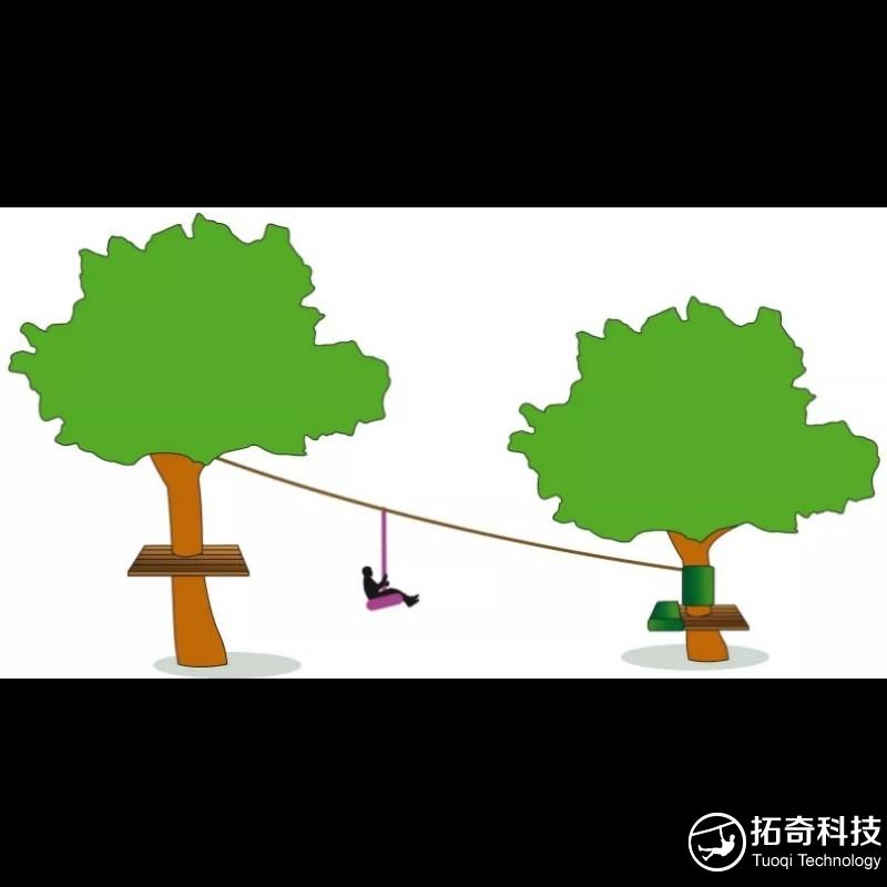 滑索游戏模块由一个大面积染色聚酰胺编织秋千设计,并配有轮胎作为座椅。