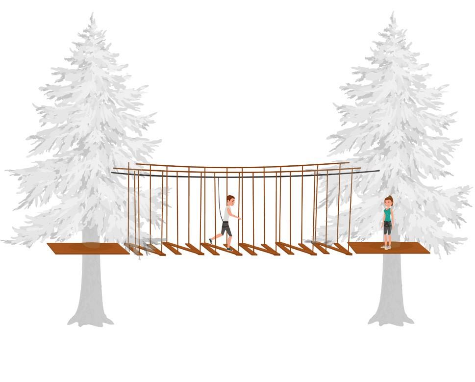 安装在两根钢丝绳上。绳索间距为60厘米。弹弓长200厘米。