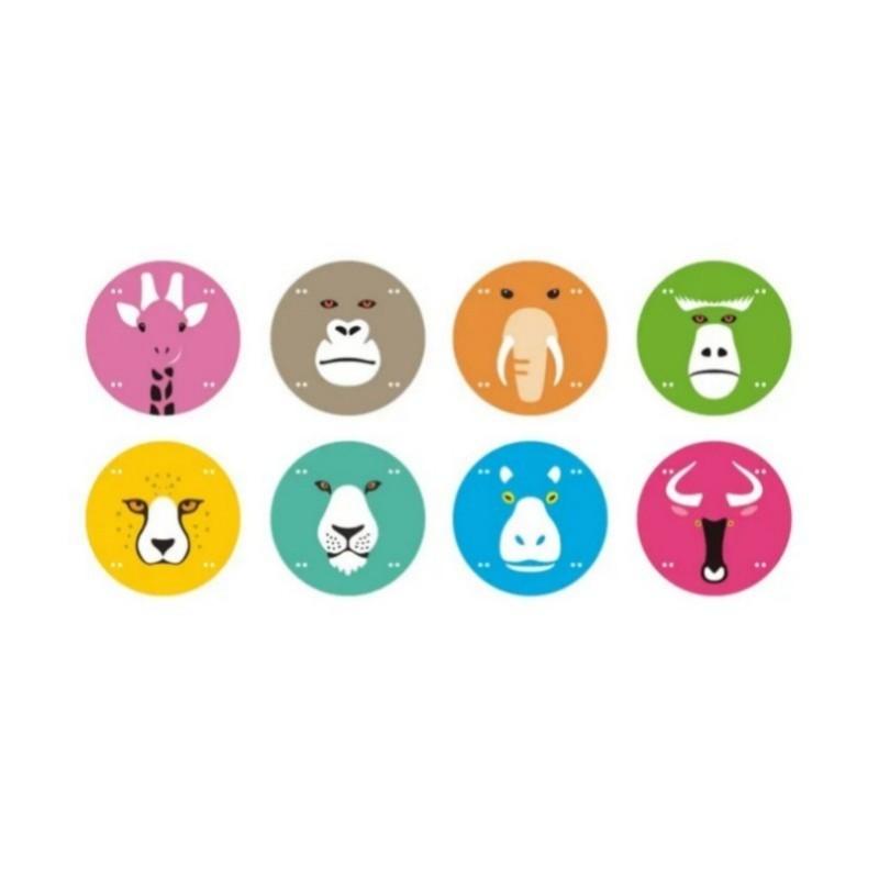 第一组四联包含长颈鹿、大猩猩、猎豹和狮子。第二组四联包含大象、狒狒、河马和角马。