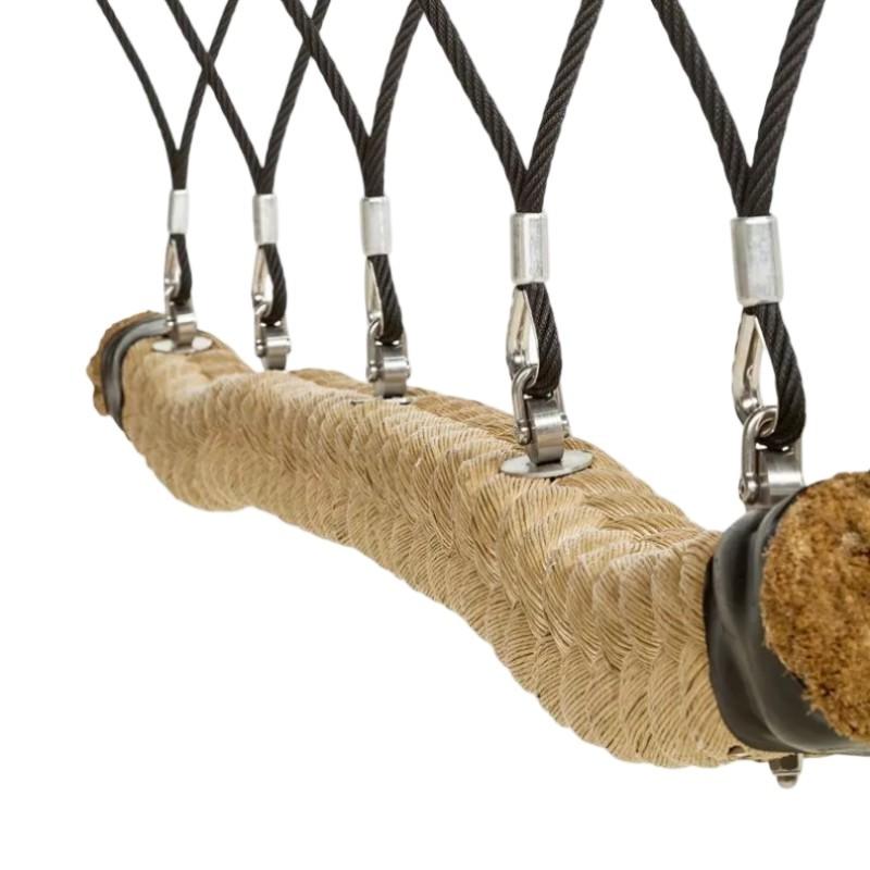 海盗秋千由140毫米×140毫米的聚丙烯绳制成。为固定,需定期布置直径16毫米的钢筋绳索悬挂,