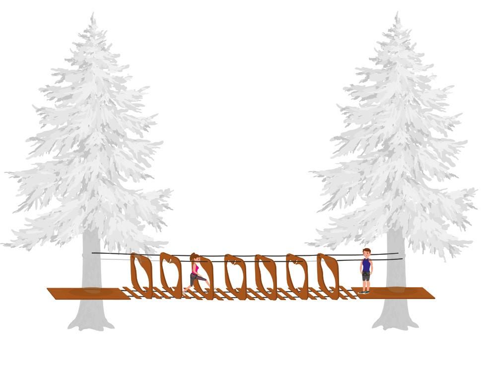安装在两根钢丝绳上。孔之间的距离为100厘米。窗户安装在顶部两根钢索上。