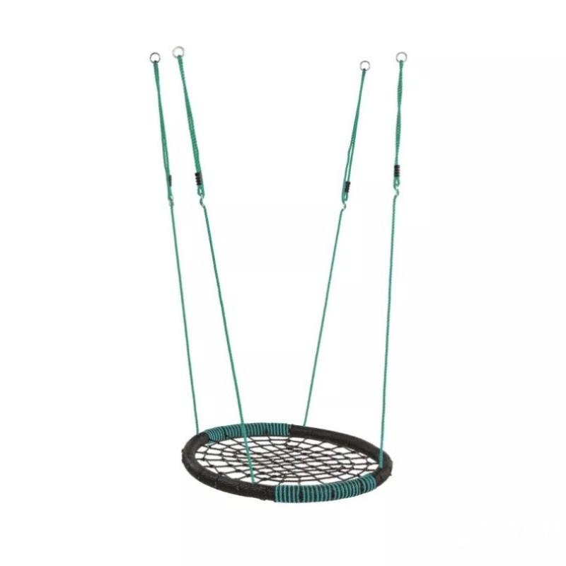 这条滑索配有带有软冲击区的秋千,并配有黑色聚丙烯外衬。悬挂环和八个镀锌钢调节环均为预备。