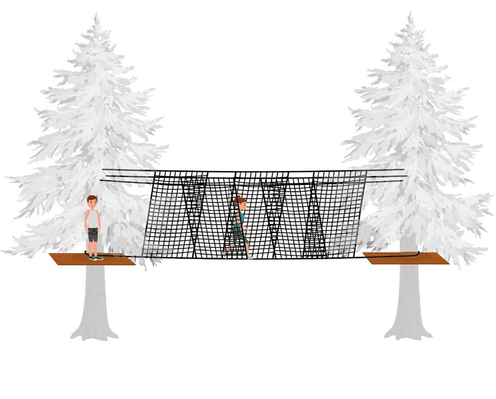 安装在三根钢丝绳上。锯齿形安装。网孔尺寸:25厘米或30厘米。绳径:16mm大小网尺寸:1米× 2.5米尺寸可定制。