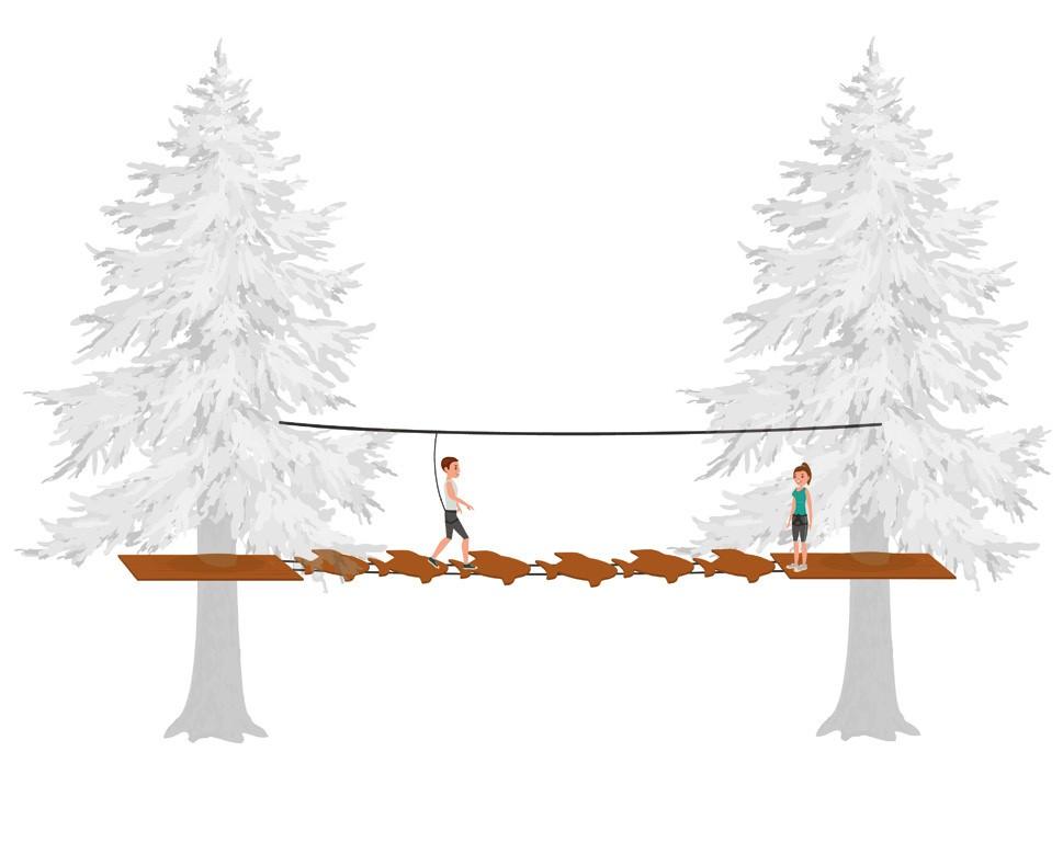 安装在两根钢丝绳上。孔之间的距离为50厘米。